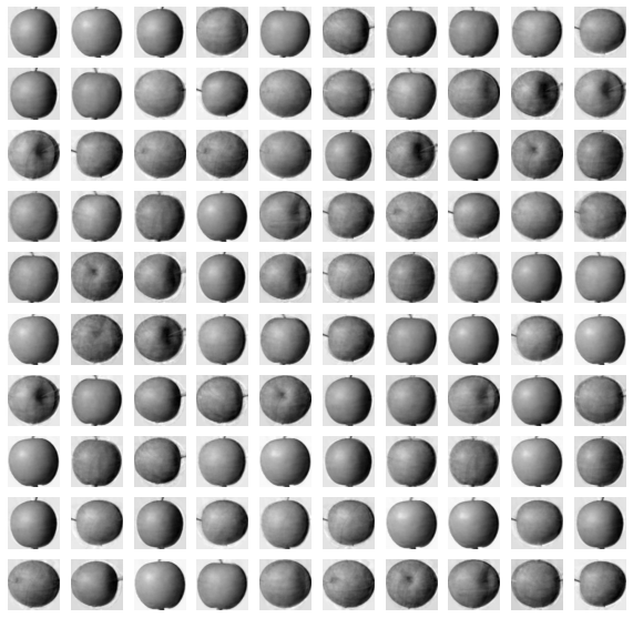 fruits_reconstruct = fruits_inverse.reshape(-1, 100, 100)