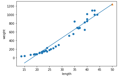 # 50cm 농어에 대한 예측