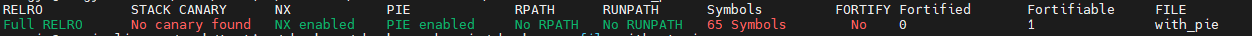 Default로 PIE가 지원하지 않음을 알 수 있다. PIE를 위해서는 -fPIE -pie가 필요하다.